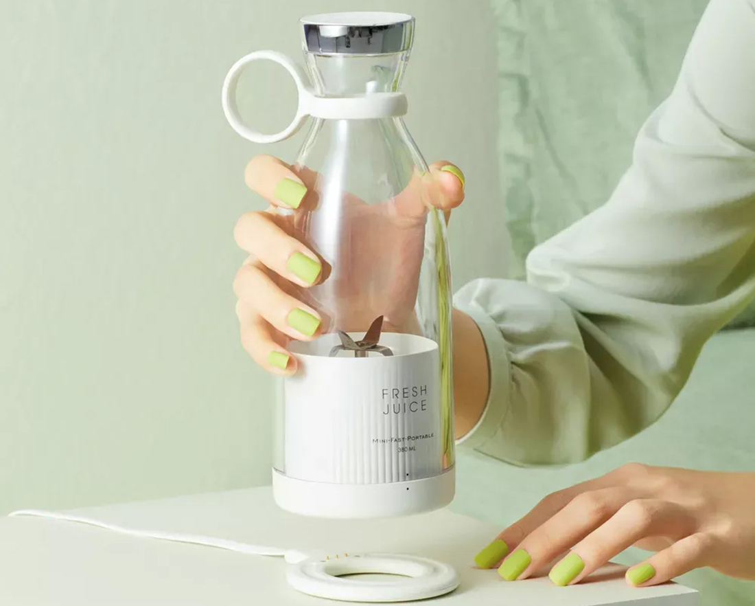 La licuadora mini es tan fácil de transportar como una botella de agua, con una capacidad de 350 ml, hermosa en apariencia y fácil de llevar. Es adecuada para el hogar, el trabajo, la escuela, la playa, el gimnasio o los viajes.
