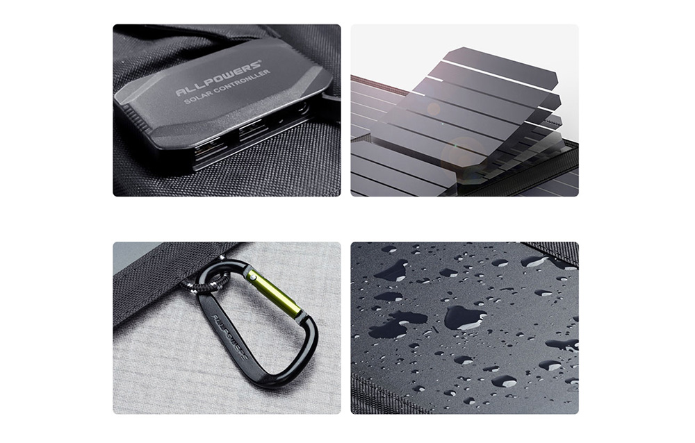 El panel fotovoltaico plegable Allpowers 21W está construido con materiales de alta calidad y diseñado para resistir condiciones exteriores rigurosas. Está hecho con materiales resistentes al polvo y al agua, lo que lo hace lo suficientemente duradero como para resistir aventuras al aire libre como caminatas, campamentos y mochileros.