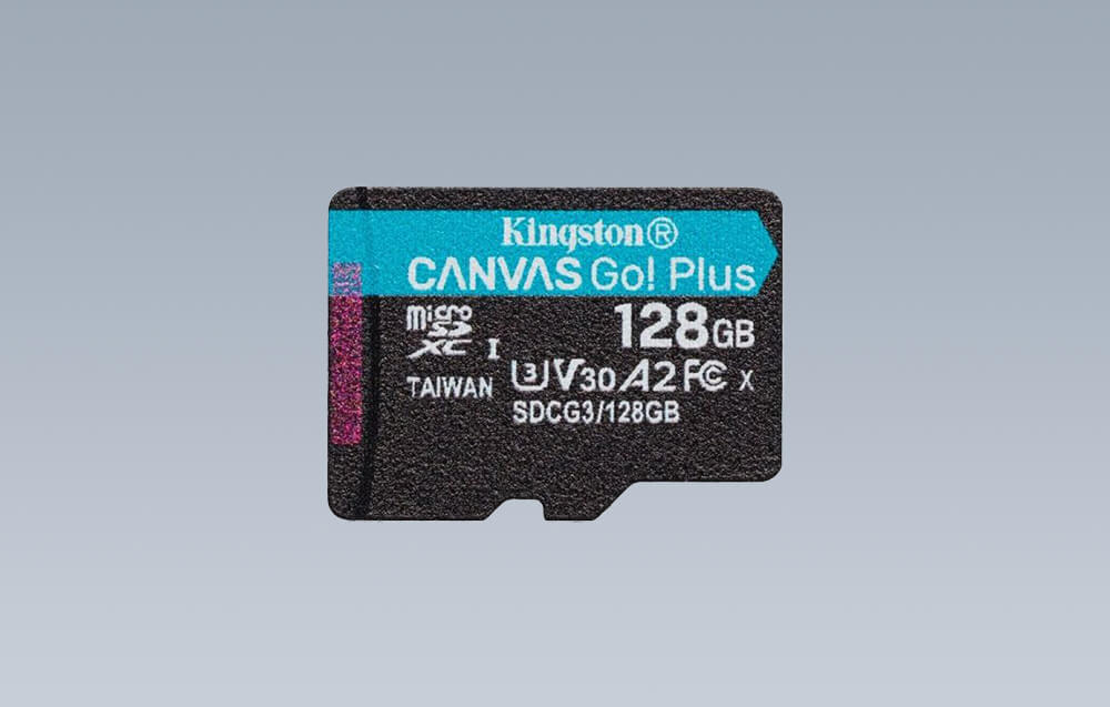 La tarjeta microSD Kingston Canvas Go Plus tiene una capacidad de almacenamiento de 128GB, ideal para entusiastas de la grabación de video 4K.