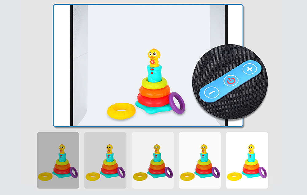 Una característica destacada de este mini estudio es la capacidad de ajustar el brillo de la luz, lo que te permite resaltar los atributos de tus productos según lo desees. Ya sea para resaltar detalles delicados o para crear un ambiente específico, el control de brillo ofrece flexibilidad para lograr los resultados deseados en cada sesión fotográfica.