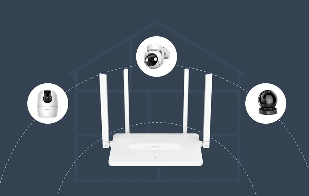 El Router Wifi Dual-Band IMOU AC1200 se conecta automáticamente a las cámaras IPC IMOU. Olvídate de configuraciones complicadas y emparejamientos manuales; simplemente coloca la cámara dentro del alcance del Router Wifi Dual-Band IMOU AC1200 y da un paso hacia un hogar inteligente donde los dispositivos cooperan perfectamente.