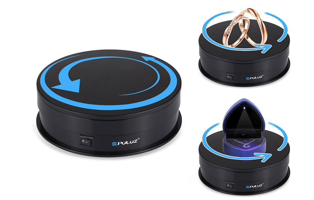 El soporte tiene un único botón que utilizas para encenderlo, apagarlo o cambiar la dirección de rotación. El Soporte Fotográfico Panorámico Giratorio Puluz 360 15cm, lo que te permite ver el producto exhibido desde todos los lados. Además, el soporte está equipado con una almohadilla antideslizante, para que puedas colocarlo en una superficie lisa sin preocupaciones.